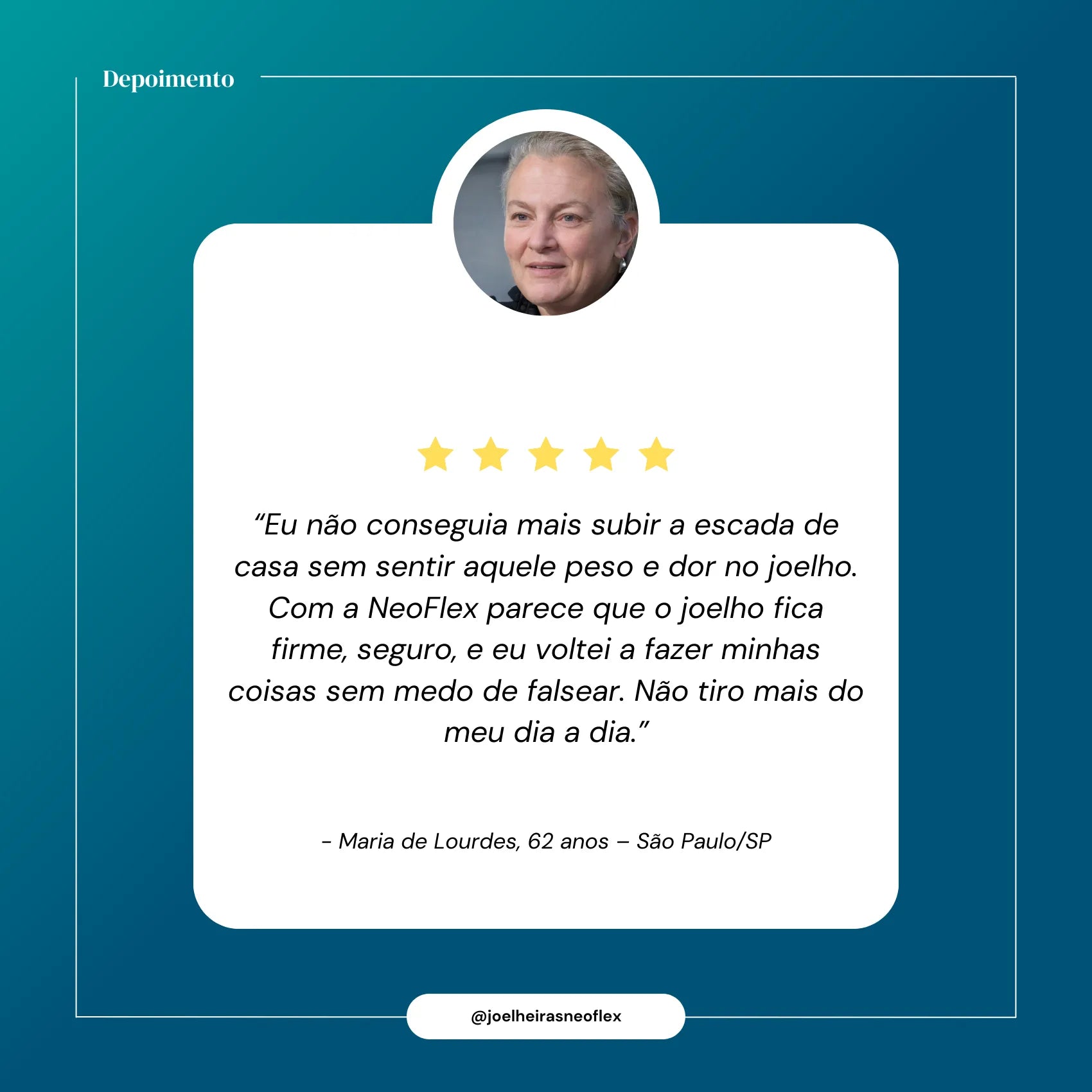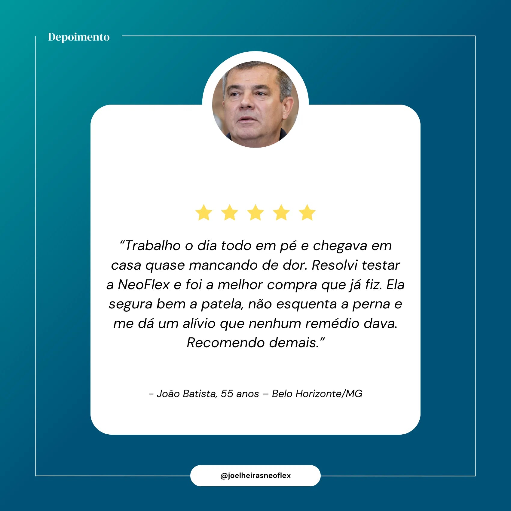 Muitos clientes relatam alívio já nos primeiros dias de uso. Com o uso contínuo, a NeoFlex contribui para uma melhora significativa na mobilidade e redução das dores.