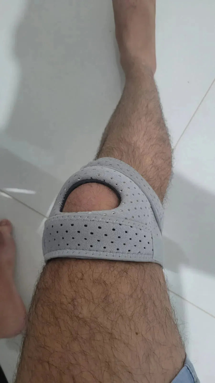 Basta deslizar a joelheira sobre o joelho, ajustá-la para um encaixe firme e seguir com suas atividades normalmente.